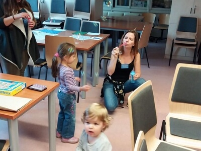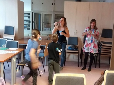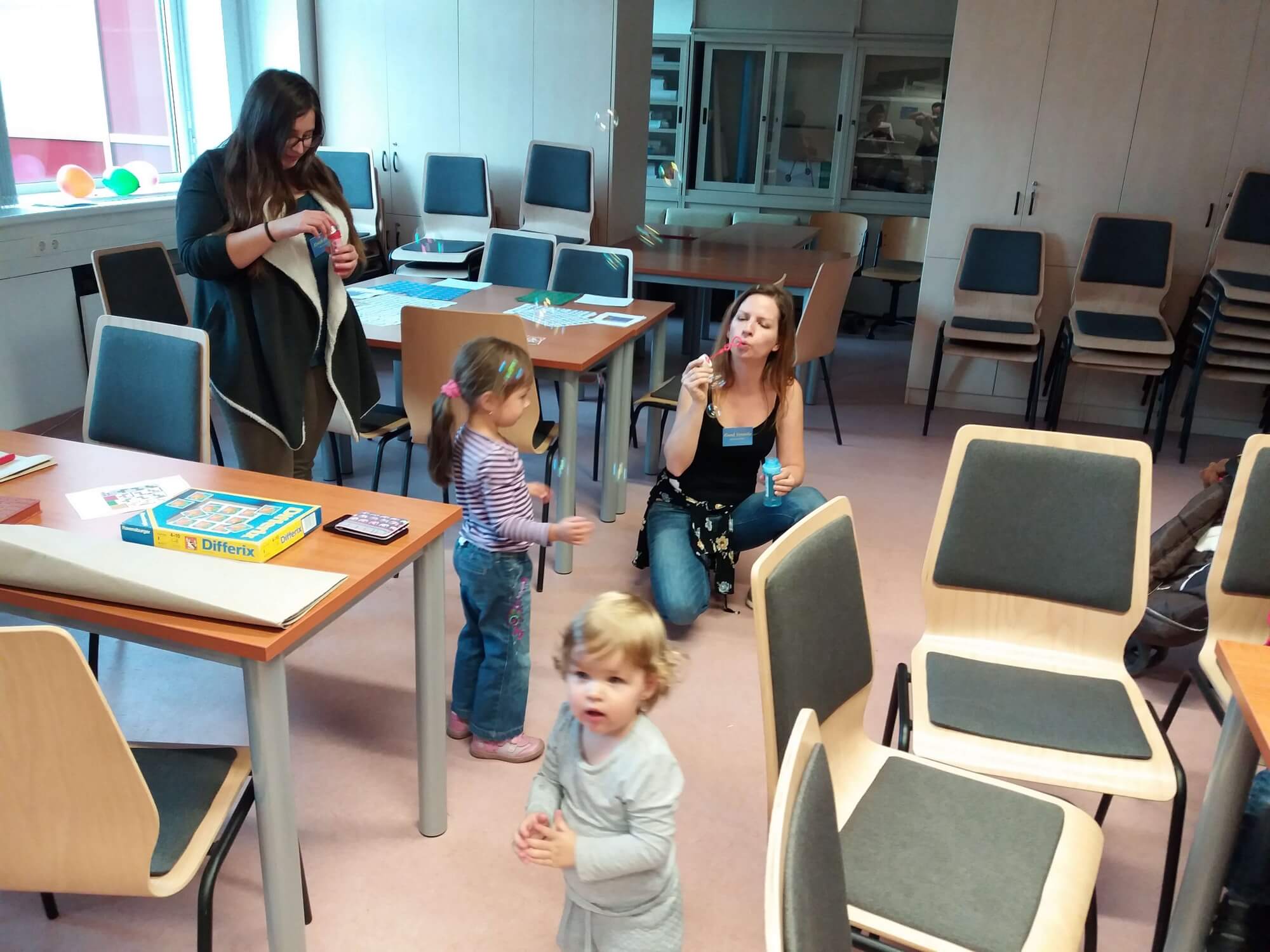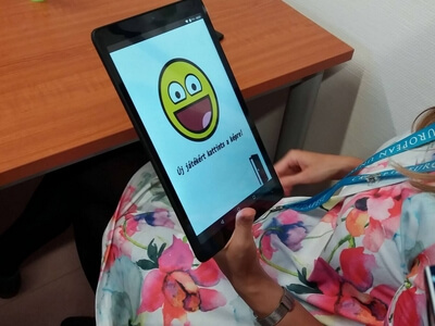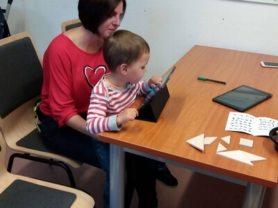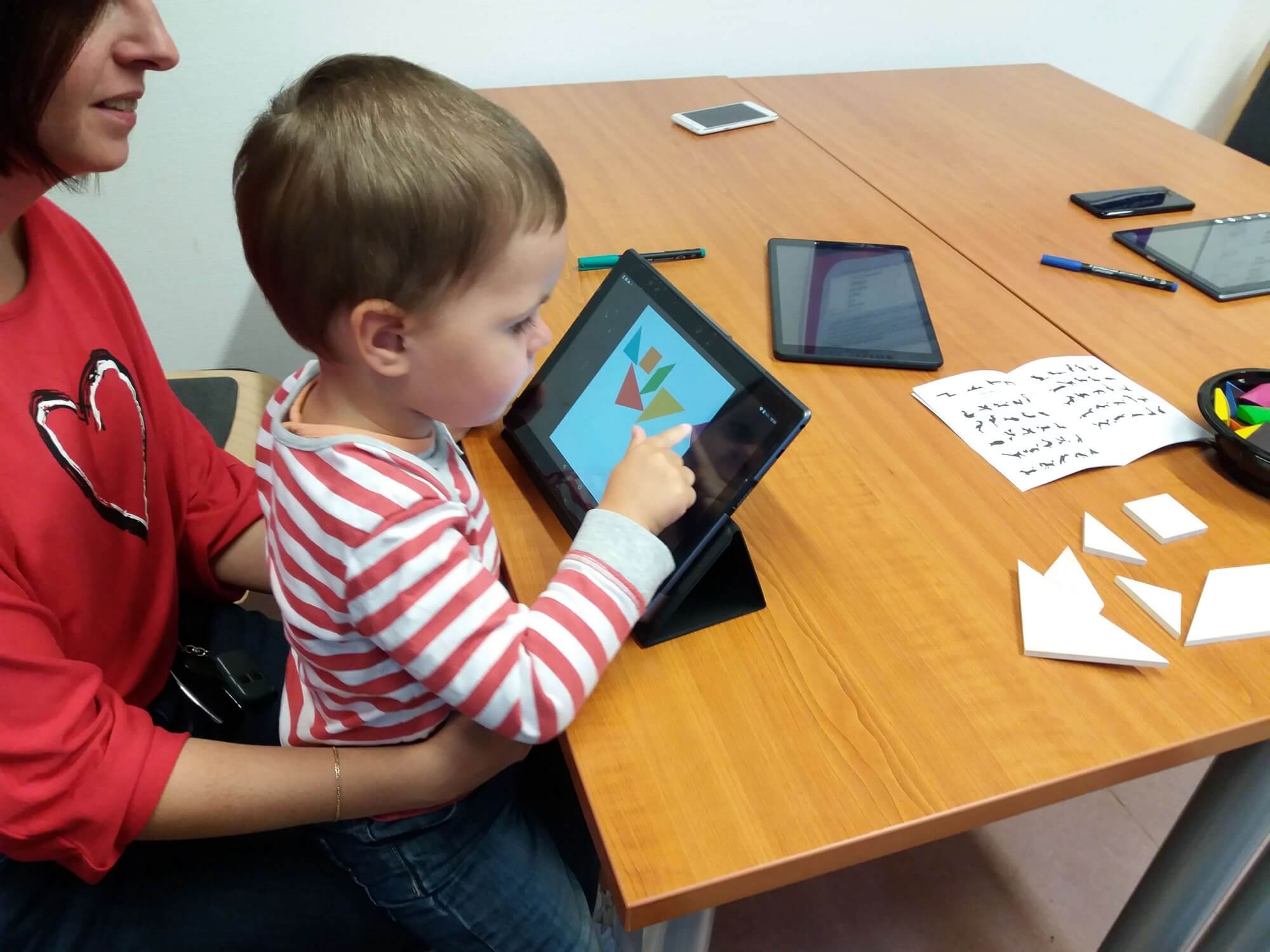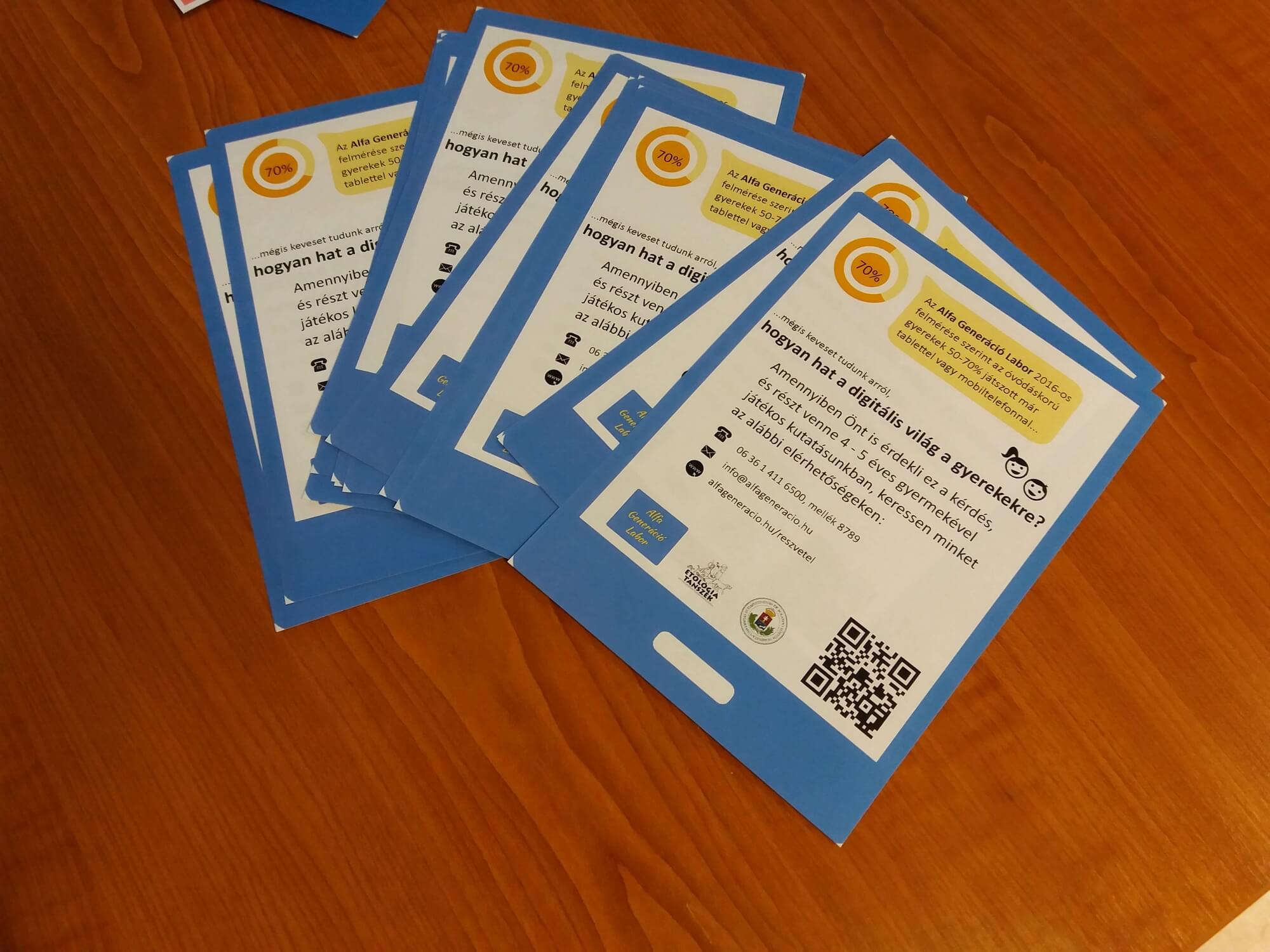 A Kutatók Éjszakáján az Alfa Generáció Labor is részt vett, ahol óvodások játszhattak digitális és valós eszközökön. Volt például online és offline buborékpukkasztás, memóriajáték, tangram kirakó. Közben a szülőkkel arról beszélgettünk, milyen új lehetőségeket és problémákat hoz a digitális korszak, és milyennek képzelnek el egy „jó” mobilt.